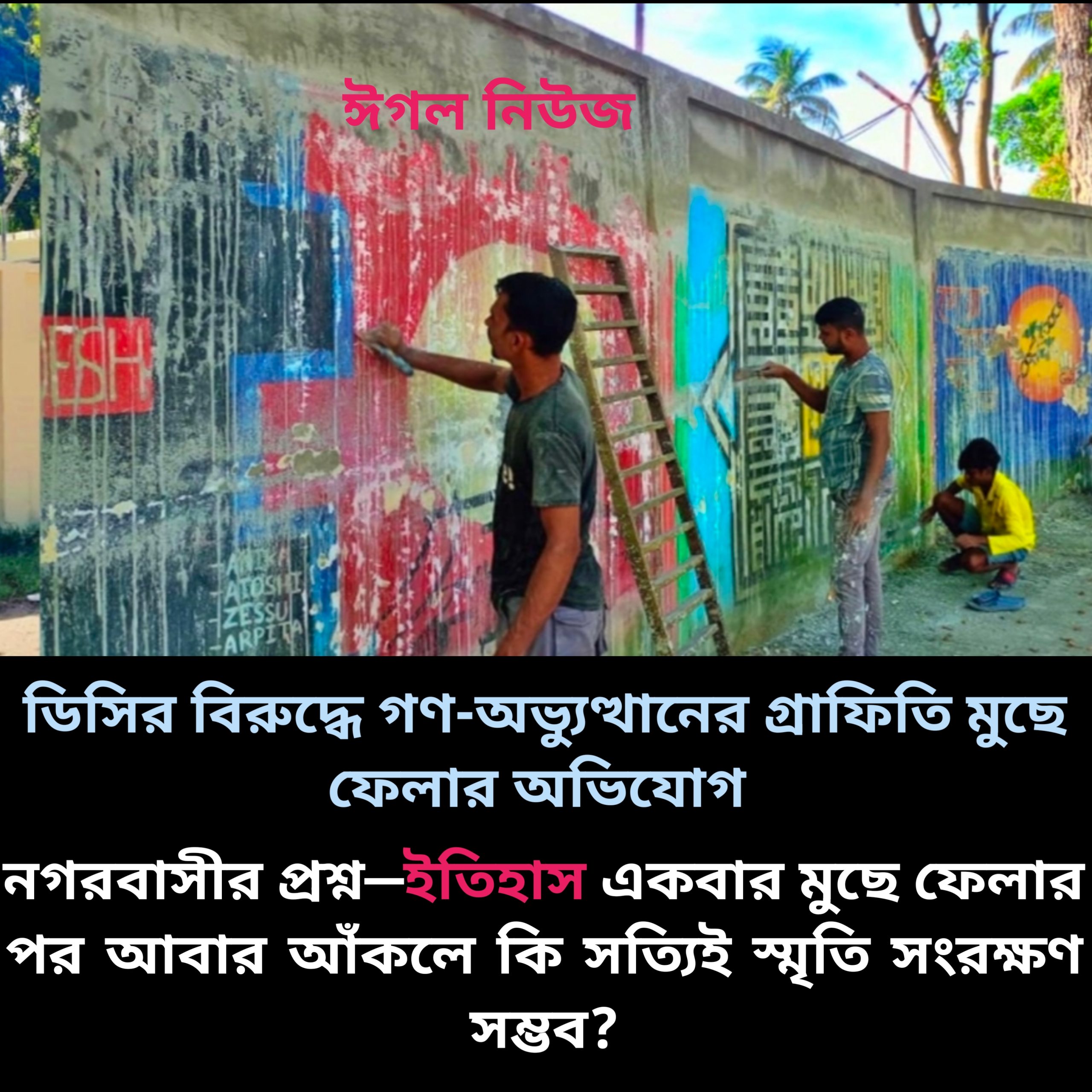 ডেস্ক নিউজ : ছাত্র-জনতার গণঅভ্যুত্থানে ময়মনসিংহ শহরের দেয়ালে আঁকা ফ্যাসিবাদবিরোধী, দুর্নীতিবিরোধী ও রাষ্ট্র সংস্কারধর্মী গ্রাফিতি মুছে ফেলার অভিযোগ উঠেছে জেলা